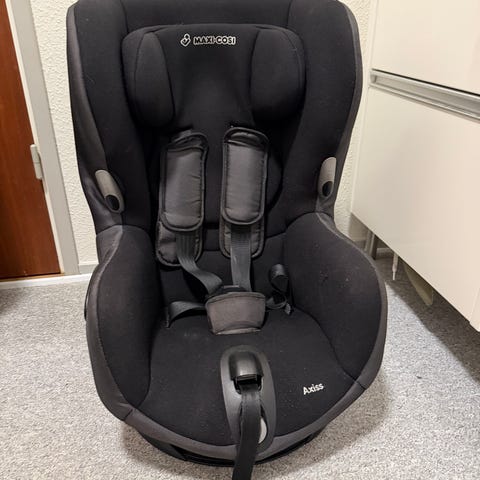 Maxi-Cosi autostol til børn op til ca. 18 kg. Autostolen er sort med polstret sæde og ryglæn samt integreret hovedstøtte. Den har 5-punktssele med polstrede skulderremme og spænde mellem benene. Stolen fastgøres med bilens 3-punktssele og har tydelige monteringsanvisninger på siden. Velegnet som gruppe 1 autostol (ca. 9-18 kg) til brug i personbil.