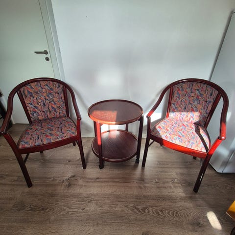 2 stole med hynder og lille bord