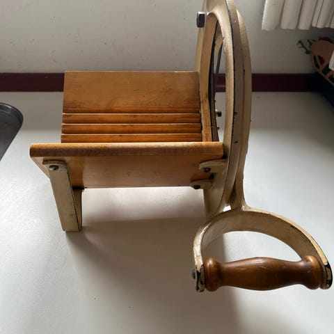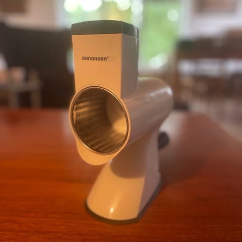 Schnitzer manuel kornmølle i træ. Møllen har håndsving og justerbar valsning/maling via metalvalser. Velegnet til at knuse eller grovmale korn til f.eks. gryn og mel. Kan fastgøres til bordkant med medfølgende spændebeslag. Konstruktionen kombinerer træ og metaldele for stabil brug ved manuel formaling af hele korn.