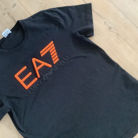 Armani sweatshirt til herre i størrelse S. Trøjen er sort og fremstillet i bomuld(33%) og Modal (67%). Klassisk rund hals og ribkant ved ærmer og bund. Fronten har trykt Emporio Armani-logo. Velegnet som hverdags- eller fritidstrøje.