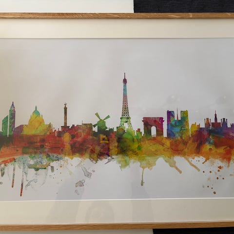 Billede i røde og orange nuancer fra Paris i speciallavet rubinrød ramme med plexiglas.