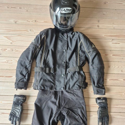 Komplet sæt dame motorcykeltøj, støvler, hjelm mv