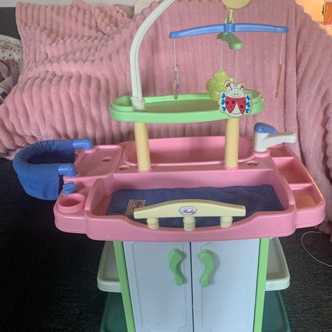 Baby Born lege puslebord med stativ pink plastik til ungernes legedukker