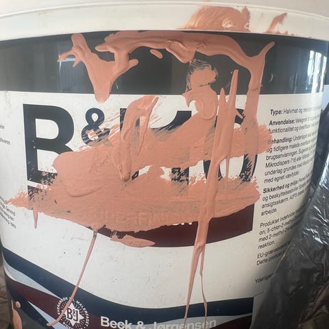 Flügger farveprøve i nuancen Misty Olive. Bøtten indeholder 0,35 liter og er mærket som base 1. Velegnet som prøve til væg- eller loftmaling for at teste farven før eventuel større maling af rum eller flader.