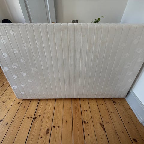 Fin boxmadras i 120 x 200 cm.. Brugt men i ok stand. Lille hul på ene hjørne ( se billede). Kan ikke ses når der er topmadras og lagen på. Man ligger stadig fint på den. Skal bruge en ny top madras.