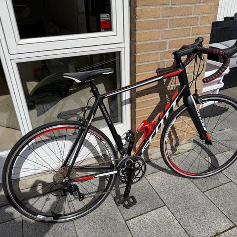 Scott racercykel i unisex-udgave med XL stelstørrelse.