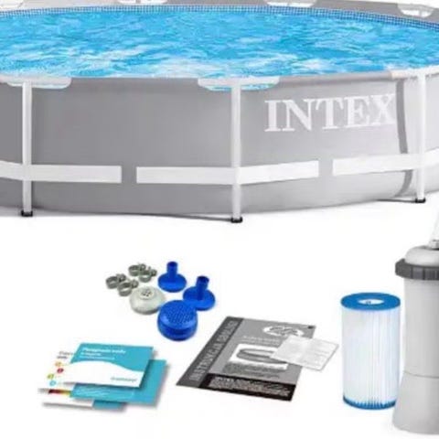 Comes with all the accessories, spare filters, pH and Clorine starting set and 3 inflatable toys.