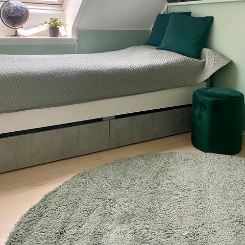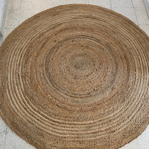 IKEA Ådum rundt tæppe i brun nuance. Tæppet har en tæt, blød luv og er velegnet til brug i f.eks. stue, soveværelse eller børneværelse.