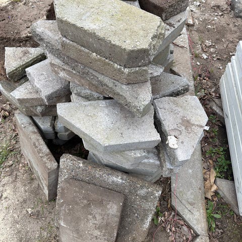 Beton kantsten i firkantet form og grålig farve. Egnet til afgrænsning af bede, stier eller pladser i have og udendørsarealer. Stenene fremstår som massive betonemner med ru overflade, velegnet til lægning langs kanter eller som afslutning på belægninger.
