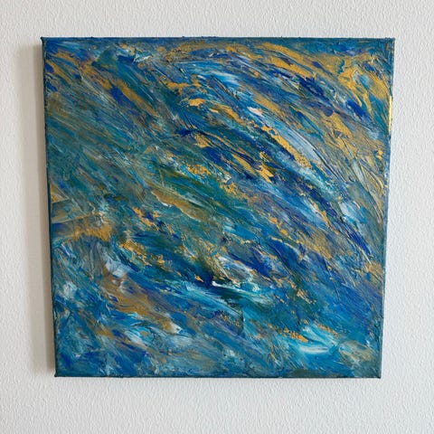 Abstrakt maleri på af oliemaling på lærred i flere farver.