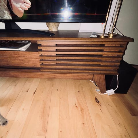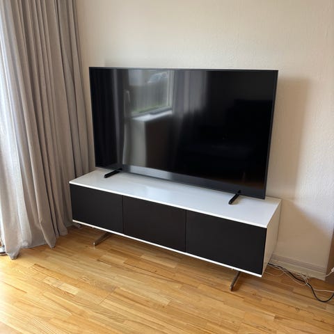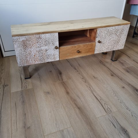 Et designer TV bord i bedste kvalitet, med praktisk opbevaring og to hylder.