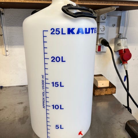 Plastdunk med hane i hvid plast. Dunken har integreret bæregreb og skruelåg med påmonteret tappehane, som gør det muligt at dosere eller tappe væske kontrolleret. Velegnet til opbevaring og transport af forskellige typer væsker, fx vand eller rengøringsmidler, efter behov og producentens anvisninger.