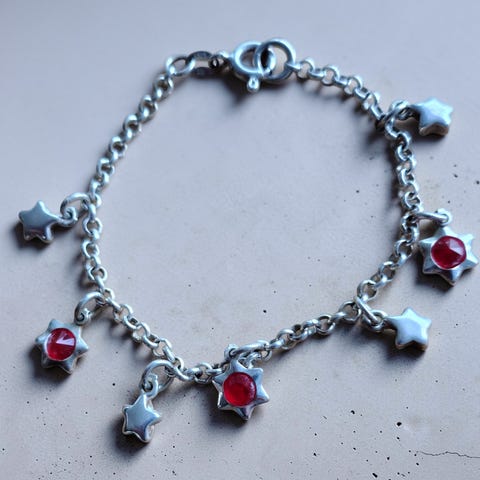 Sterling sølv armbånd med charms. Vægt ca. 15 gram. Længde ca. 20 cm.