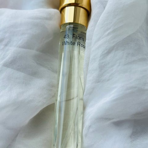 Top notes are African Orange Flower, Iris and Rose; middle notes are Tuberose and Pink Pepper; base notes are Musk and Benzoin.
