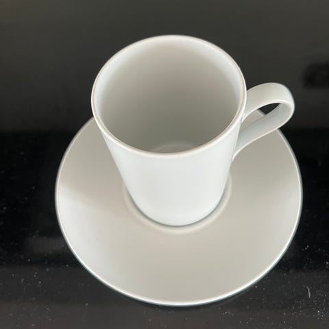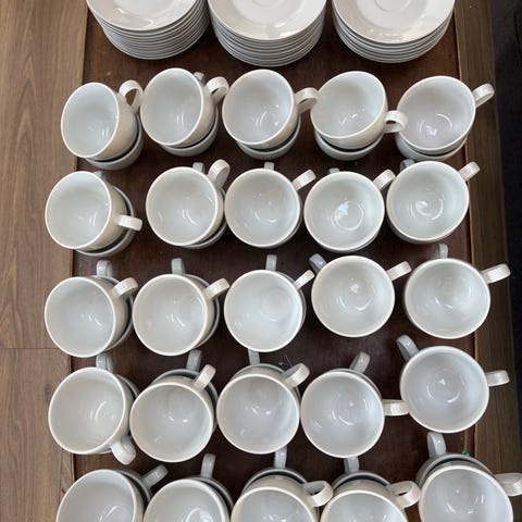 14 stk. kaffekop med underkop og 14 stk. sidetallerkener i hvidt porcelæn. Alle uden skår. 1 stk ekstra underkop medfølger gratis.