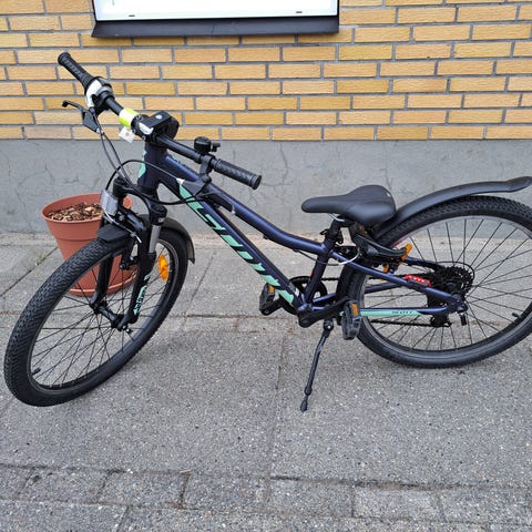 24 tommer hjul. Støddæmper foran. 21 gear.3x7. Masser af nye dele. Lås med nøgle. Lys opladet med en telefonoplader. Cykel efter service. Alt fungerer som det skal.
