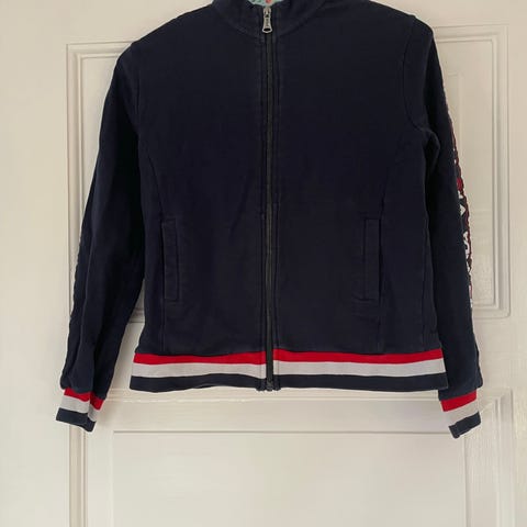 Tommy Hilfiger jakke til dreng i str. 174. Jakken er blå og fremstillet i polyamid. Den har hætte med indvendigt for med Tommy Hilfiger-logo, samt logo-bånd langs ærmerne. Velegnet som let overgangs- eller vindjakke til hverdagsbrug.