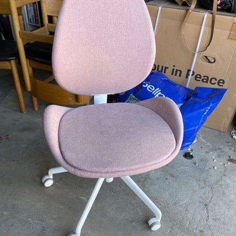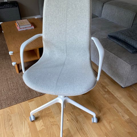 Sælger denne stilrene og komfortable LÅNGFJÄLL kontorstol fra IKEA. Det er modellen med mørkegråt (gunnared) stofpolstring, sorte armlæn og sorte hjul, hvilket giver et moderne look til hjemmekontoret.