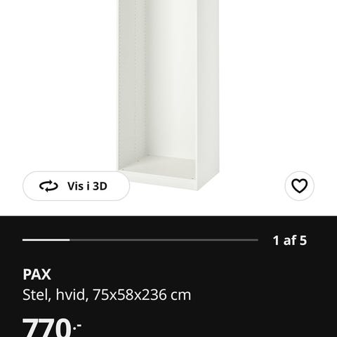 Uåbnet PAX skab, egetræsmønster, 100 x 58 x 236 sælges billigt.