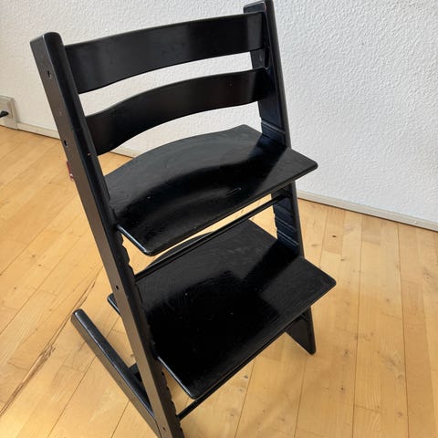 Sort Tripp Trapp stol sælges da vi ikke bruger den mere.