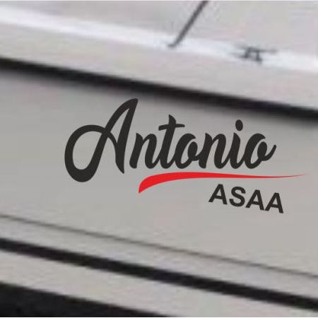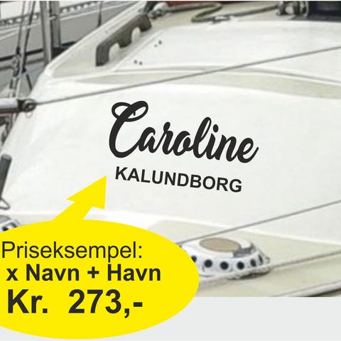 Navnet kan tilpasses i skrifttype, størrelse og farve efter behov. Egnet til både sejl- og motorbåde.