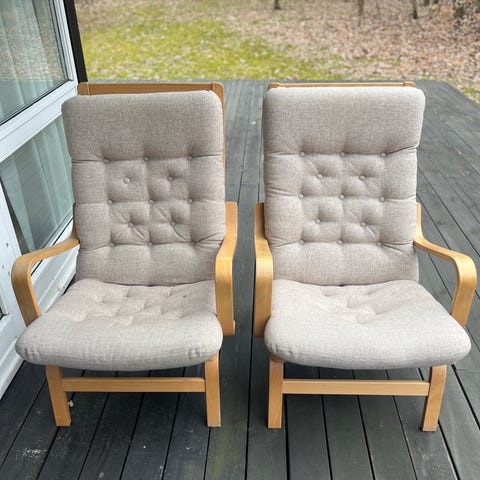 Lænestole i høj kvalitet. Lavet af sort læder med træramme. Meget behagelig at sidde i.