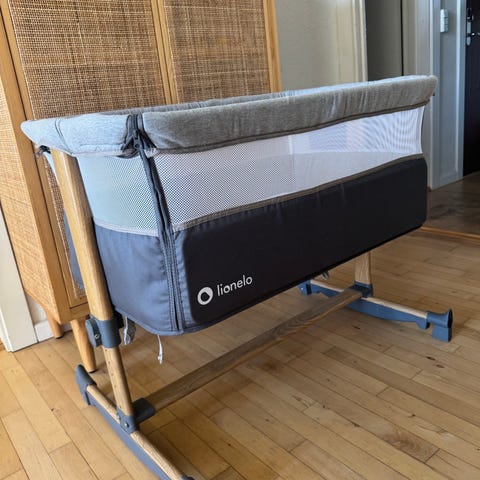 Lionelo Leonie 3-i-1 Multifunktionel babyseng, som kan bruges som fritstående seng, sideseng eller vugge. Sengen er velegnet fra nyfødt og op til ca. 9 kg eller indtil barnet selv kan sidde.