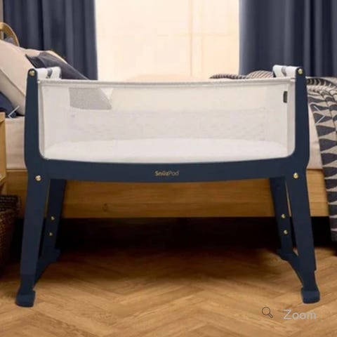 Kan fastgøres til forældresengen med medfølgende remme eller bruges som selvstændig seng. Højden kan justeres i flere niveauer, så den passer til forskellige sengehøjder. Benene kan drejes, så funktionen ændres til vugge.