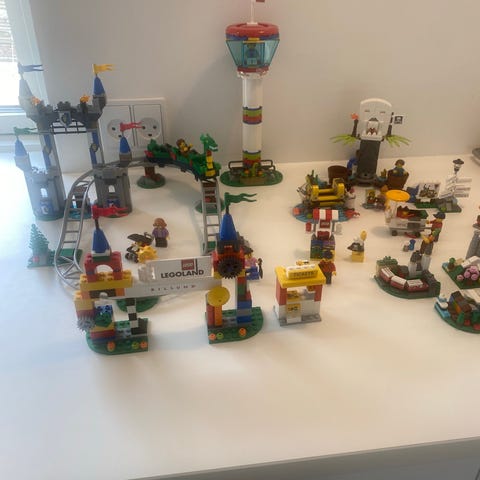 LEGO City LEGOLAND byggesæt. Sættet forestiller en forlystelsespark med indgangsparti, borg med rutsjebane, udsigtstårn, små forlystelser og parkmiljø. Der medfølger flere minifigurer samt forskellige tilbehørsdele som boder, skilte og køretøjer. Velegnet til leg med by- og forlystelsestema samt udbygning af andre LEGO City miljøer. LEGO City Legoland byggesæt. 1336 dele. Sættet står samlet, så man kan se at alle dele er der. Sættet forestiller en Legoland-forlystelsespark med indgangsparti, billetbod, borg med rutsjebane, udsigtstårn, små bygninger, figurer og tilbehør. Velegnet til leg med by- og forlystelsestema og kan kombineres med andre LEGO City sæt for udvidet legeunivers.