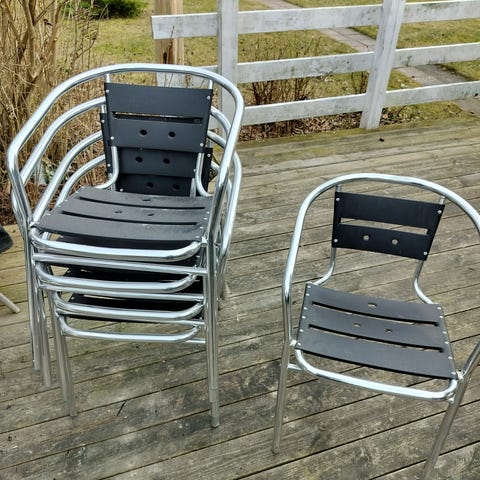 Jeg sælger disse 4 stole og cd/dvd reol det hele for 115 kr