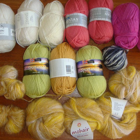 4,6 kg 80 % uld 20 % polyester. strikkes på pind 4-5 kender ikke løbelængden, sælges samlet for 450 kr kan hentes i Odense eller sendes for 55 kr