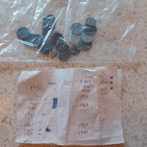 gamle 2 og 1 øre mønter