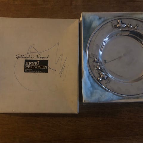 Sølvtallerken, 50 år gl., Rigtig flotte sølvtallerkner, har arvet dem fra min svigermor, de har kun stået k lukket skab og er i rigtig god stand. Mål Ø27