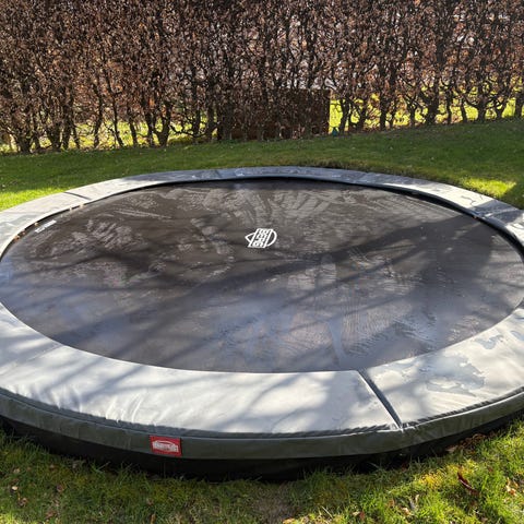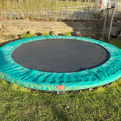 Trampolinen er skildt ad og har aldrig stået ude om vinteren.