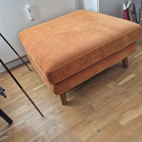 Sælger to fine grå puffer betrukket med uld og med brune træben. Sælges samlet for 600 eller enkeltvis for 300 kr. pr. stk.