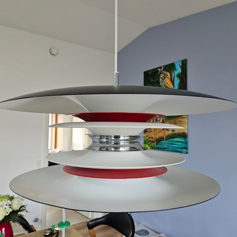 Denne model er en nyhed fra Belid. En unik lampe, der gir et fantastisk lys, uden man kan se pæren, så en 100 procent blændfri lampe. Lampen findes også i mange andre lækre farver. Diablo lampen kan også bruges i det klassiske, såvel i det top moderne hjem, og er idag en stor lampe serie med forskellige størrelser pendler, bordlamper, væglamper og gulvlamper.