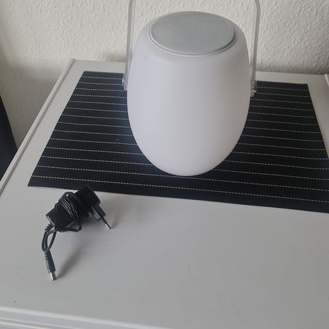 Amazon Echo smart højttaler i gråt stofdesign. Enheden har indbygget stemmestyring via Alexa og kan bruges til afspilning af musik, styring af kompatible smart home-enheder, timers, alarmer og informationstjenester. Højttaleren er cylinderformet med kontrolknapper på toppen og lysring øverst. Leveres med original emballage som vist på billederne.
