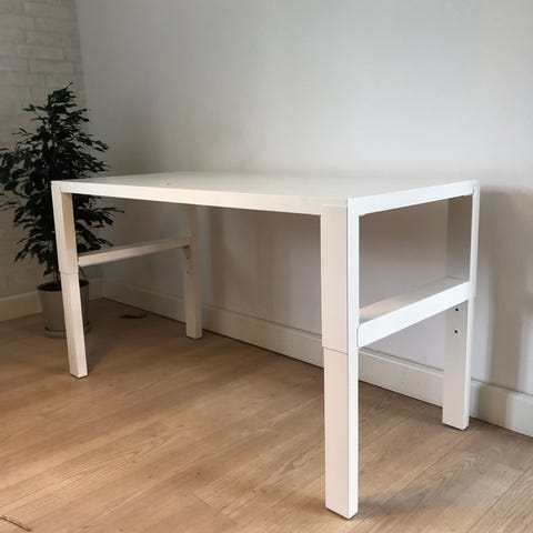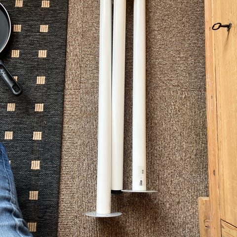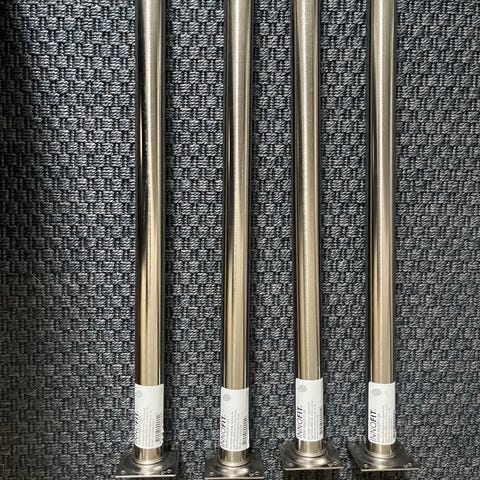 2stk IKEA Gerton bordben i metal. Rundt, justerbart ben med monteringsplade i stål til fastgørelse under bordplade. Velegnet som understel til skrivebord, arbejdsbord eller andre borde, hvor der ønskes et enkelt metalben fra IKEA’s Gerton-serie.