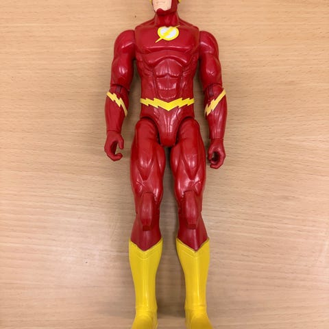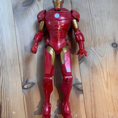 Captain America actionfigur i blå og rød plastik. Figuren forestiller superhelten i klassisk dragt med skjoldmotiv på brystet og røde støvler. Egnet som legetøj eller som samlerfigur.