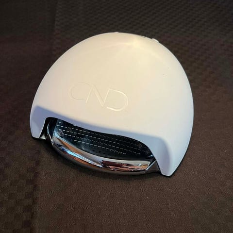 CND LED lampe til negle i hvid. Lampen er beregnet til hærdning af gelé- og shellacprodukter på hænder og fødder. Enheden har LED-lys og betjenes via knapper på oversiden med forudindstillede tidsintervaller. Designet giver plads til hele hånden eller foden, og lampen kan anvendes i professionelle saloner eller til hjemmebrug, hvor der arbejdes med kompatible CND produkter. Er brugt 2-3 gange☺️