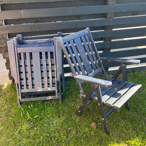 2 stk. NÄMMARÖ klapstole til haven. De har stået ude og har derfor spor af vind og vejr og trænger til lidt olie.
