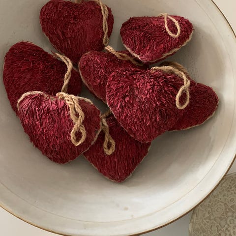 Hjerter til ophæng, Rigtigt fine 3 stk.. Selve hjertet er 12 cm i højde, båndet er 35 cm lang.