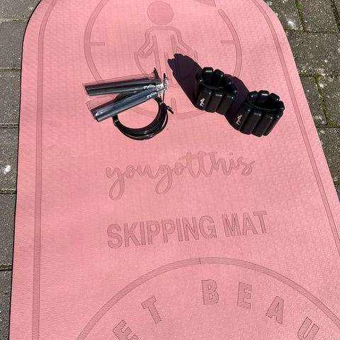 Elite Jumps træningsmåtte i sort med røde detaljer. Måtten er egnet til forskellige former for træning, f.eks. hoppe- og konditionstræning, styrkeøvelser og gulvøvelser. Overfladen er designet til at give stabilitet under bevægelse. Leveres med tilbehør som vist på billedet.