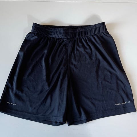 Satisfy løbeshorts til herre i størrelse L. Shortsene er sorte og har elastisk talje med snøre for justerbar pasform. Modellen har flere lommer i siderne, velegnet til opbevaring af småting under løb. Let og fleksibelt materiale, der giver god bevægelsesfrihed til løbetræning og anden sport.