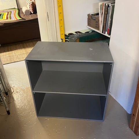 Montana reol/hylde i antracit. Skabet fremstår som et enkelt, rektangulært opbevaringsmøbel med åbning på forsiden og sider med forboringer til montering af hylder. Egnet til opbevaring i f.eks. stue, kontor eller depotrum.