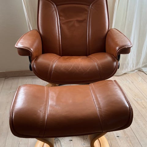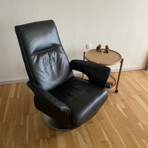 Lænestol som ikke skal bruges længere. Fejler ingenting, og man sidder rigtig godt i den.