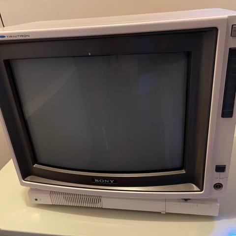 Sony Trinitron KV-M2101D farve-tv med billedrør. Skærmstørrelse 21". Modellen er et CRT-tv i sort kabinet og kører på 220-240V, 50Hz. Velegnet til brug med ældre spillekonsoller og andre analoge videokilder via de tilgængelige tilslutninger. Der er antennestik eller scart stik. Leveres med fjernbetjening, som vist på billederne. Lækkert mørkt billedrør fra Sony - perfekt til spillekonsollen Playstation, Nintendo eller sågar Commodore 64 eller Amiga
