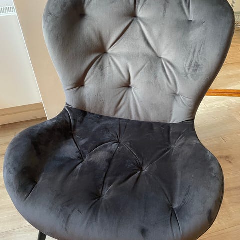 Grå lænestol / loungestol fra Ellos. Behagelig at sidde i og i god stand. Ben / stellet er i metal. Har været glad for den, men skal have en lille baby så har brug for noget mere plads
