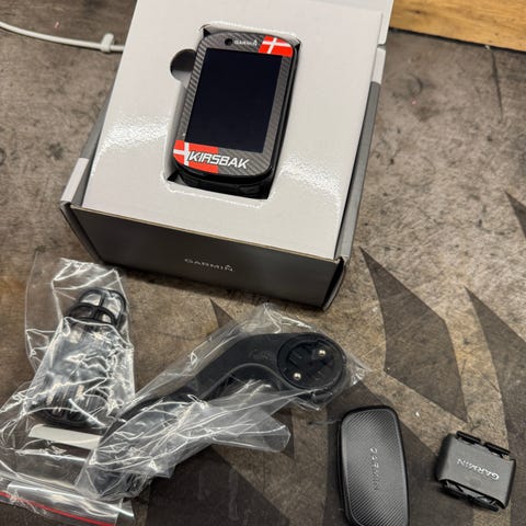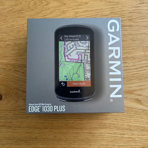Garmin cykelcomputer 1030 Edge Plus med cover. Enheden er monteret på racerstyr og har et beskyttende rødt cover. Egnet til brug på landevejscykel eller andre cykler, hvor der ønskes GPS-navigation og registrering af træningsdata. Leveres som vist på billederne uden holder til styrmontering.