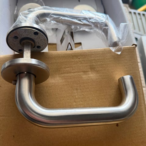 11 stk Dørgreb i U-form med diameter Ø16 mm i rustfrit stål. Leveres i plastpose med tilhørende monteringsdele. Egnet til montering på indvendige døre.